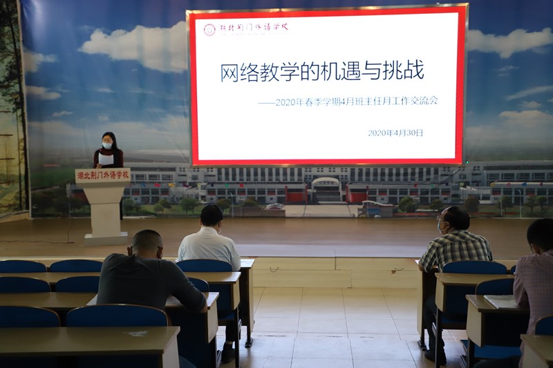 2020年4月30日上午,高中部德育处组织召开主题为“网络教学的机遇与挑战”--2020年春季学期4月班主任月工作交流会。高中部杨清校长、金文泉副校长、朱小炳委员、德育处所有干部和全体班主任参加会议。
