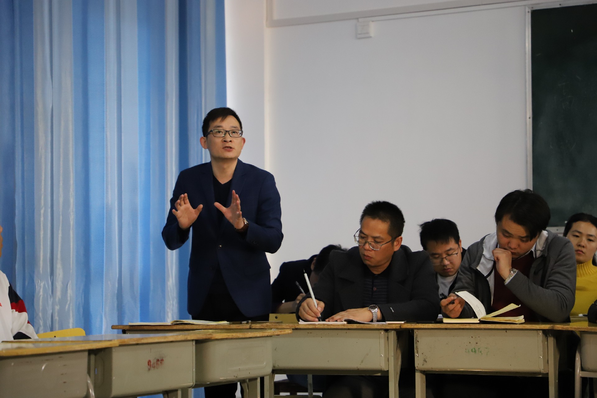 首先,由田明清和胡劲松两位新班主任分别展示寝室管理现场教育和抽烟学生教育示范课;