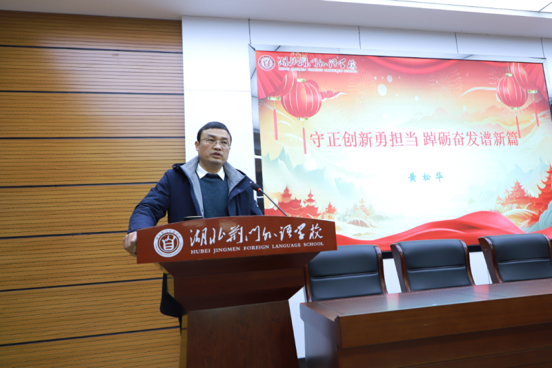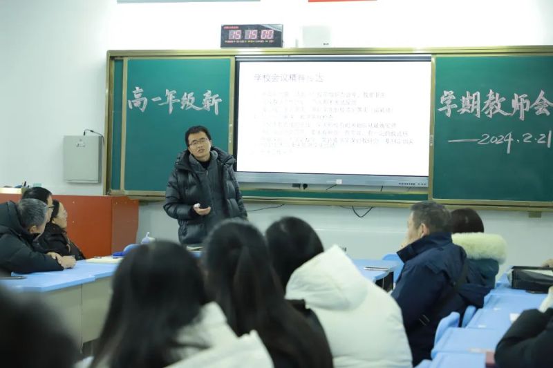 黄书记在报告中首先用“忙碌、创新、坚定、平稳、感动”五个词语总结回顾了上学期工作。他深情感慨,岁序更替,华章又新,历史开始落笔崭新的一页,让不甘平凡的“你我”汇聚成奔涌向前的“我们”,脚踏实地,仰望星空,保持热爱,穿越山海,期待每一个春暖花开。接着,黄书记从党建、教学、德育、“青蓝工程”、安全、后勤、工资改革、招生等八个方面擘画了新学期的美好蓝图,他强调,2024年学校工作要聚焦主题主线,凝心铸魂、锤炼品格,把牢党建引领的“方向盘”;聚焦质量立校,笃行实干,砥砺深耕,唱响教学业绩的“主题曲”;聚焦德育为先,落实常规,锻造作风,牵住德育教育的“牛鼻子”;聚焦青蓝工程,弦歌永续,芳华待灼,锻造教育教学的“生力军”;聚焦平安校园,防微杜渐,防患未然,筑牢校园安全的“防火墙”;聚焦育人环境,驰而不息,善作善成,打好后勤工作的“服务牌”;聚焦工资改革,优化分配,特岗特酬,满足广大教师的“获得感”;聚焦血脉赓续,无私奉献,乘势而上,启动招生工作的“新引擎”。最后黄书记在报告提出2024年十大工作目标,为新学期的工作指明了方向。