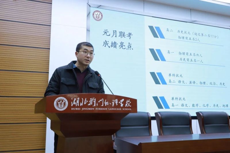 大会第二项,副校长陈治江以《思想破误区 常规抓落实》为题,进行了2023—2024学年度上学期非毕业班期末考试质量分析。陈校长肯定了期末统考取得的成绩,指出了存在的问题,提出了整改的建议。