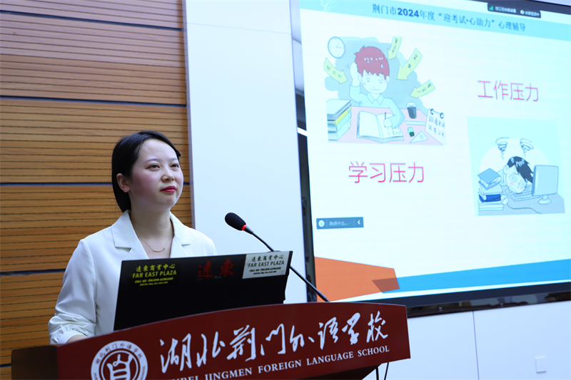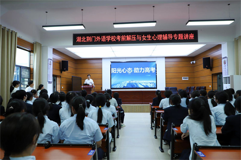 战鼓催征,高考在即。为缓解高三学生压力,引导学生以积极心态科学备考,5月14日下午湖北荆门外语学校特邀荆门市人民医院临床医生、国家三级心理咨询师何真谊医生,荆门市人民医院主任医师、妇科主任冯绣梅医生,为学生们开展考前解压与女生心理辅导专题讲座。活动由学校分管安全副校长张璋主持。