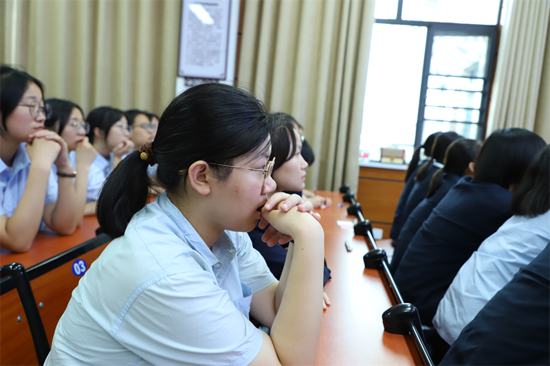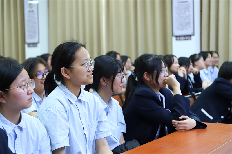 女生由于其特有的心理特点和生理结构,可能面临更大的压力,更容易出现急躁、焦虑等现象,冯绣梅医生以《拥抱青春,守护花季》为题,用专业知识为现场的女生们进行生理和保健知识讲解,教育女孩子们保护自己,爱护自己,指导她们从容面对生理期撞上高考的烦恼。现场气氛活跃,同学们收获满满。