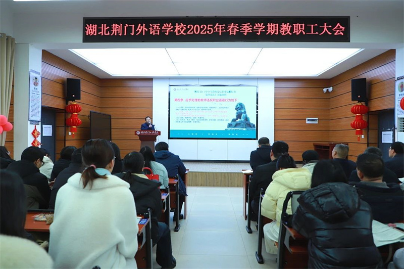 校长助理田明清组织开展师德师风警示教育,带领大家学习《新时代中小学教师职业行为十项准则》《荆门市中小学教师违反职业道德行为处理办法实施细则(试行)》《中小学教育惩戒规则(试行)》等法律法规文件。
