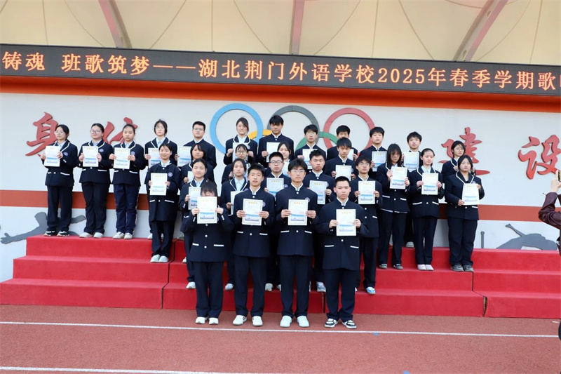 高中阶段是人生拔节孕穗的关键期。通过这次比赛同学们立志做红色基因的传承者,让爱国成为融入血液的自觉;做集体精神的锻造者,用班歌凝聚攻坚克难的团队力量;做全面发展的践行者,在艺术熏陶中涵养向美而生的品格。共同唱响“国歌铸魂”的信仰强音,谱写“班歌筑梦”的青春诗篇,为湖北荆门外语学校的明天奏响更加激昂的乐章!