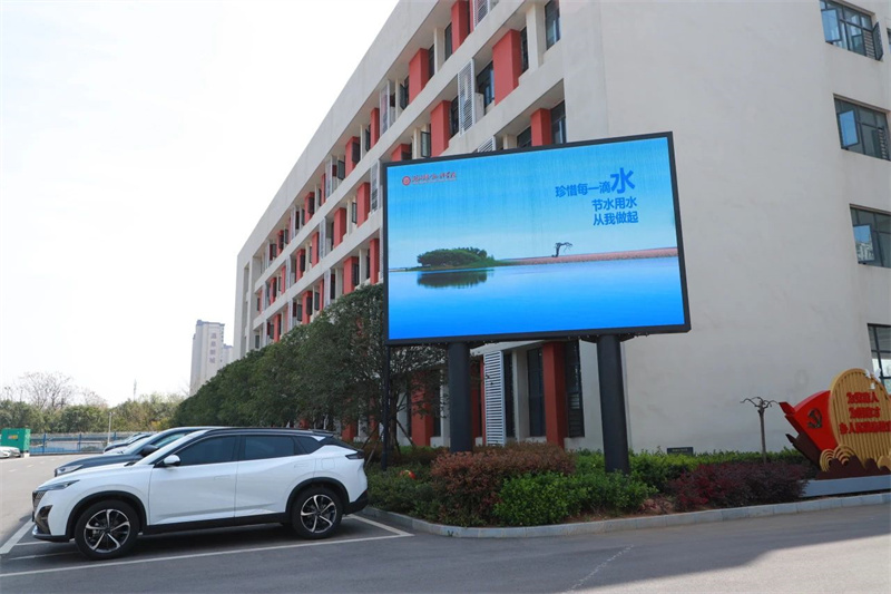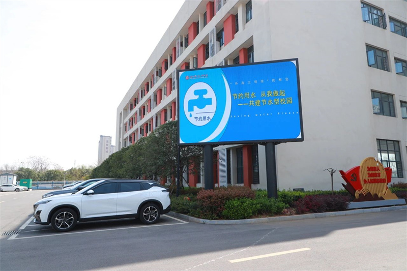 校外:校门口电子屏展示节水标语