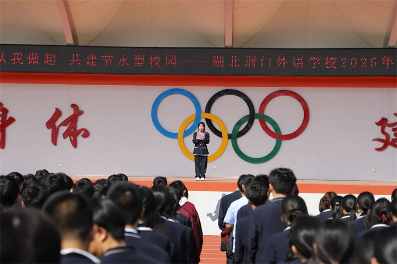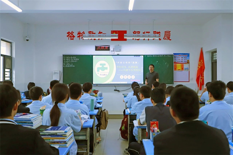 湖北荆门外语学校作为荆门大家庭的一员,当以格物躬行的实践精神,在点滴的节水中共绘“一河碧水穿城过”的荆门新名片,共同书写“厚道荆门”的绿色答卷,真正践行习近平总书记“绿水青山就是金山银山”生态理念。