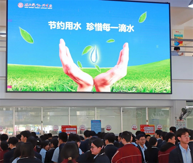 校内:食堂大屏幕滚动播放节水宣传标语
