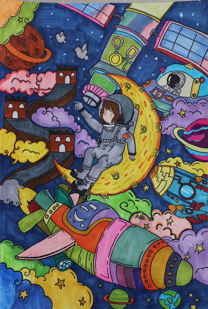 在国家体育总局航管中心、中国航空运动协会主办的2025年“飞向北京·飞向太空”绘画评比活动暨国际航联青少年航空绘画大赛中,我校学子以艺为翼,筑梦苍穹,在湖北赛区中斩获佳绩,4人荣获一等奖,1人荣获二等奖,1人荣获三等奖。