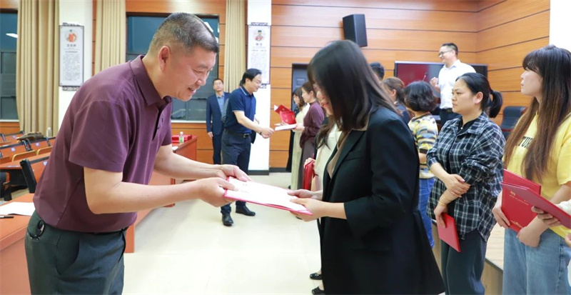 这张聘书承载的不仅是荣誉,更是一份沉甸甸的责任。新一届家委会成员依次上台,与领导们亲切握手,接过象征责任与使命的聘书。这份聘书不仅是对家长助力的肯定,更是对家校共育理念的传承。