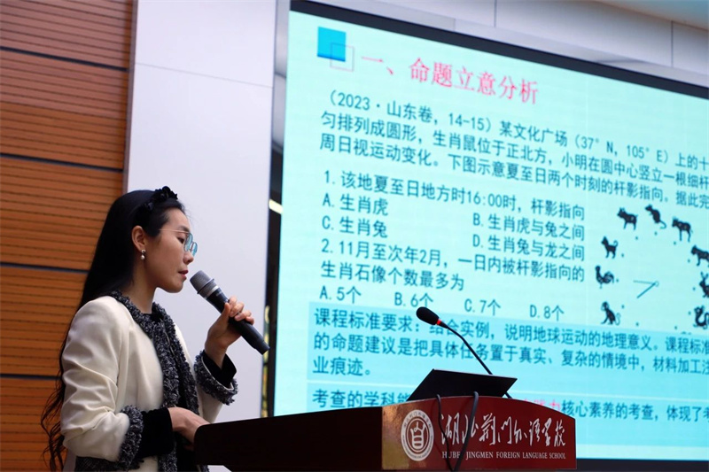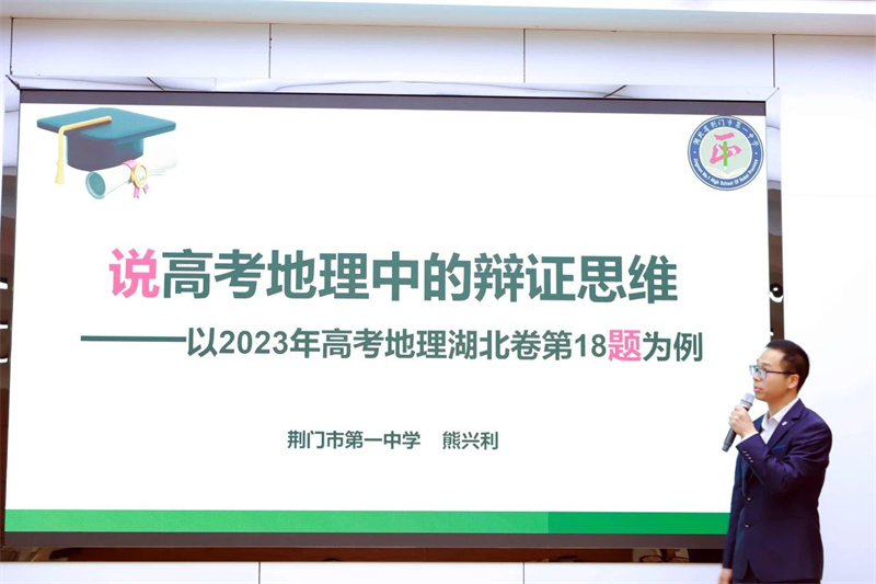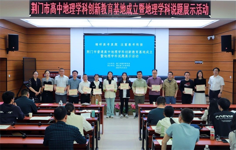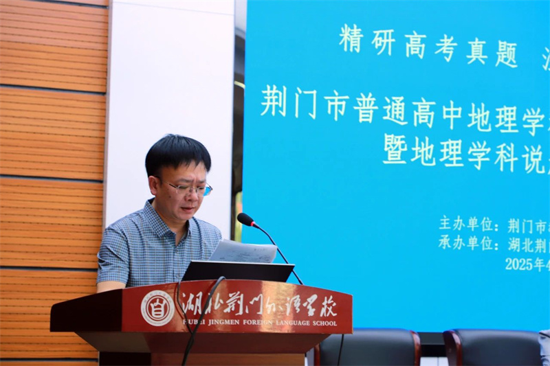 为了进一步推进荆门市普通高中地理教学教研高质量发展,发挥学校优势学科带动与辐射作用,搭建地理学科教研平台,提升教研品质,促进教师专业成长 ,由荆门市教研室主办、湖北荆门外语学校承办的“荆门市普通高中地理学科创新教育基地成立暨地理学科说题展示活动”于4月25日在我校隆重举行,本次活动以“精研高考真题,注重教研衔接”为主题,会议分为上午和下午两个部分。