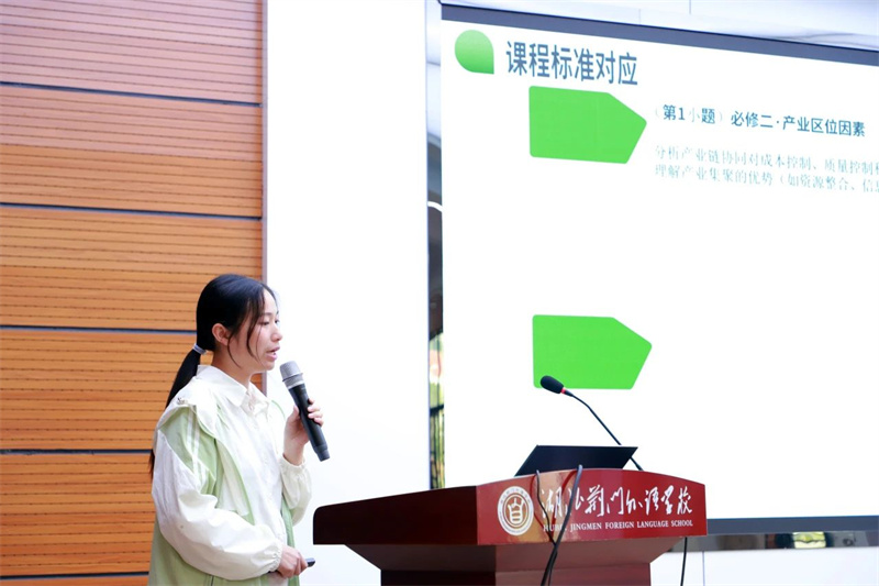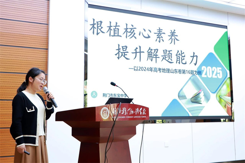随后,荆门市教研室高中科科长陈艳科长为荆门市普通高中地理学科创新教育基地成立仪式暨地理学科说题展示活动开幕式致辞,对我校为此次活动做出的前期准备工作表示充分的认可。