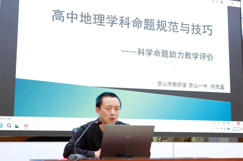 下午会议第一项是专家老师进行命题培训讲座,先后由京山市教研室高中地理兼职教研员向先富老师和龙泉中学骨干地理教师齐帅结合自己丰富的真题研究和命题经验分别给大家带来了精彩的命题培训讲座。