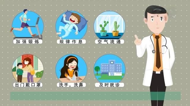 保证充足的睡眠、均衡的饮食、适量的运动,不喝生水,不吃生食等;咳嗽或打喷嚏时用肘部或纸巾遮挡口鼻或者佩戴好口罩。