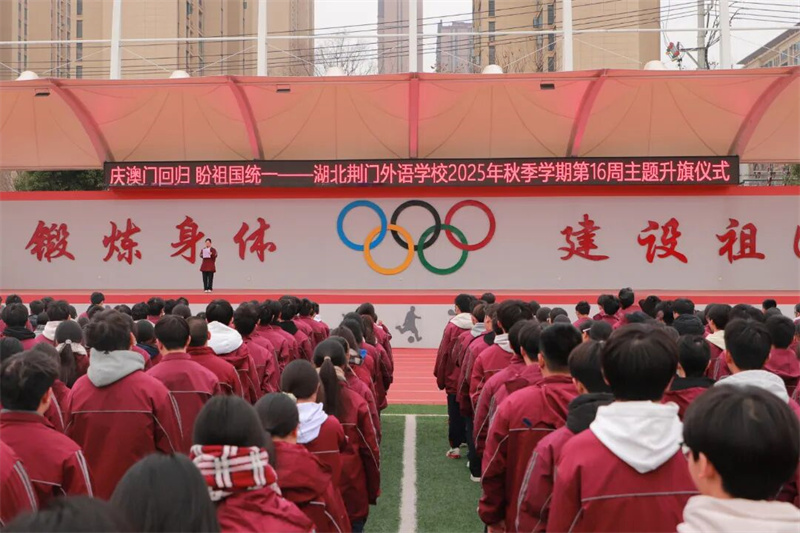 岁月鎏金,初心如磐。值此澳门回归祖国26周年之际,12月15日,举行以“庆澳门回归,盼祖国统一”为主题的升旗仪式,高二(14)班王露瑶同学作国旗下演讲。她以青春之声,与全校师生一同回望澳门回归后的繁荣发展,传递对祖国统一的深切期盼。